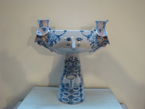 SoldTall tablelamp in polished brass with beautifully decorated tripod stand from the 1920s. The shade is handpainted and hand folded in paper.