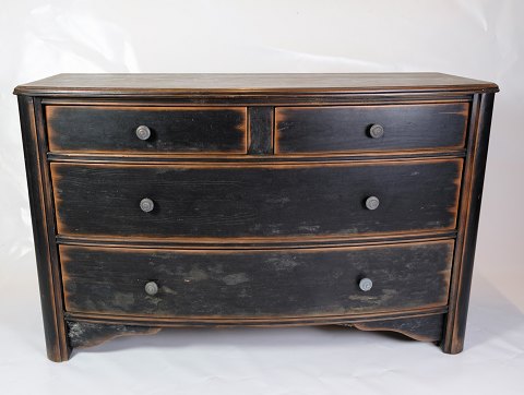 Antique bookcase of dark wood and decorated with gold from the 1930s.