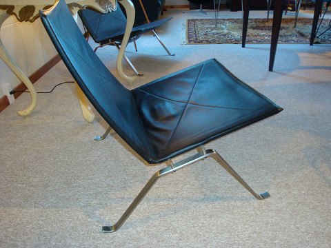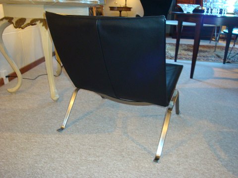 SolgtHvilestole tegnet af Poul Kjærholm model PK 22 i sort skind i perfekt stand