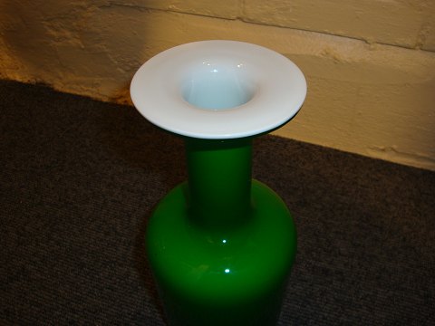 SoldFloor Vase with two stained glass green outside and white inside from Holmegaard in perfect condition 5000 m2 showroom