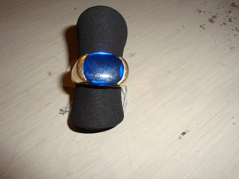 SoldMens Ring in 14 cart with very nice synthetic blue stone. Size 63.
