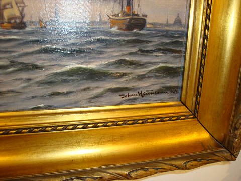 SoldMarine painting with gold frame in great quality of Johan Neumann from 1921.
