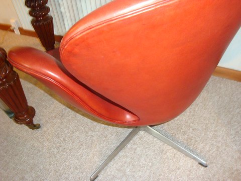 Sold2 Swan chair designed by Arne Jacobsen with Indian red leather from 1963 in perfect condition 5000 m2 showroom