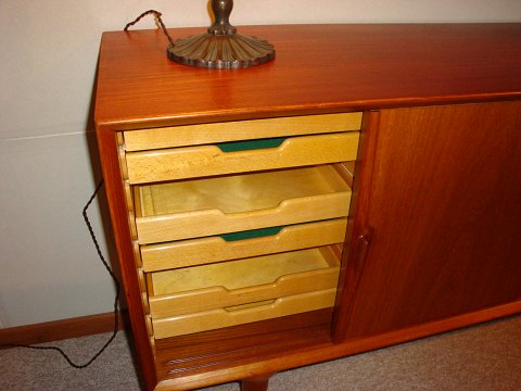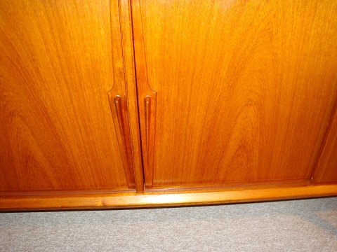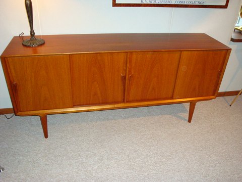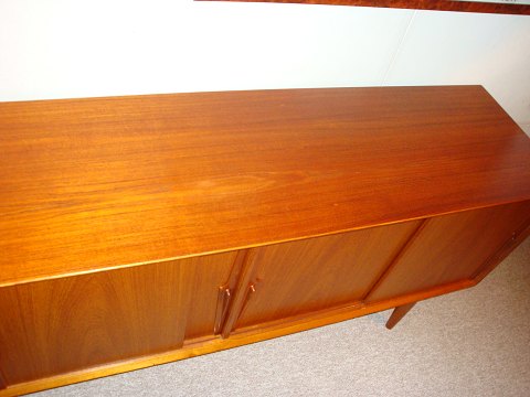 Lav skænk i teaktræ Højde 80 cm L: 180 cm tegnet af Omann Junior istandsat