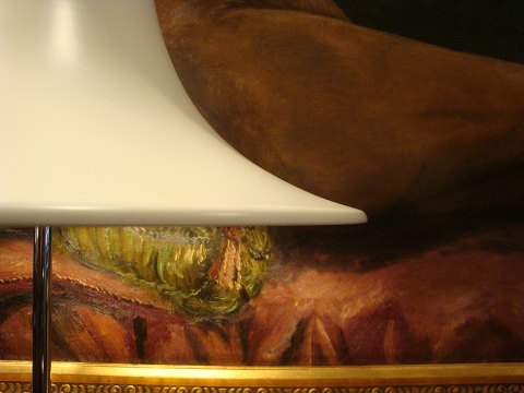 Werner Panton table lamp cream colored with metal shade. 43Ø. The lamp is in perfect condition.