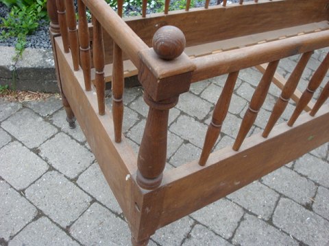 SoldAntique cot from around the year 1880. The cot has been treated in a Brown color and the bed is in good condition.