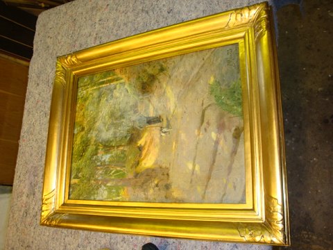 Dette maleri havde fået en dampskade. Vi har efterfølgende renset/ restaureret maleriet. Se før og efter foto.