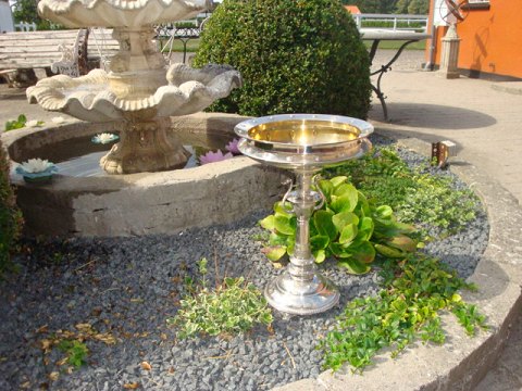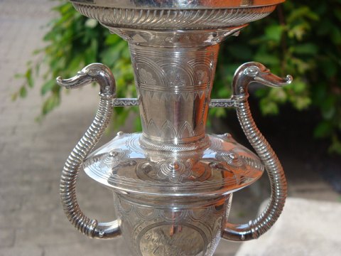 Large silver centerpiece in hallmarked silver with fine embossings.