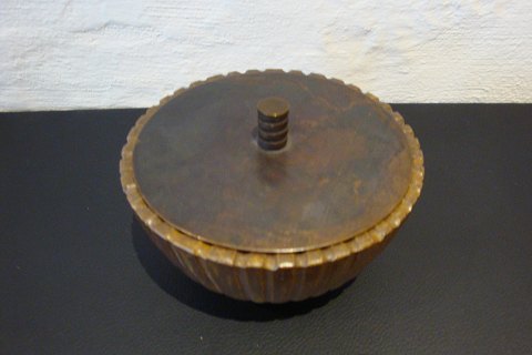 SolgtLågkrukke med bronze låg af Arne Bang Højde 7 cm og 12 cm i dia.i perfekt stand 5000 m2 udstilling