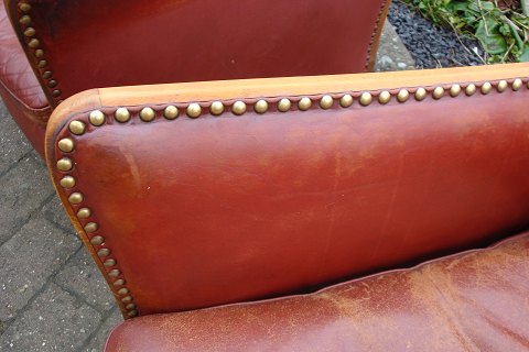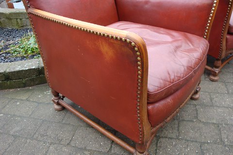 A pair of easy chairs from around the year 1930, in patinated red leather.