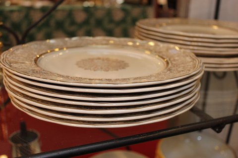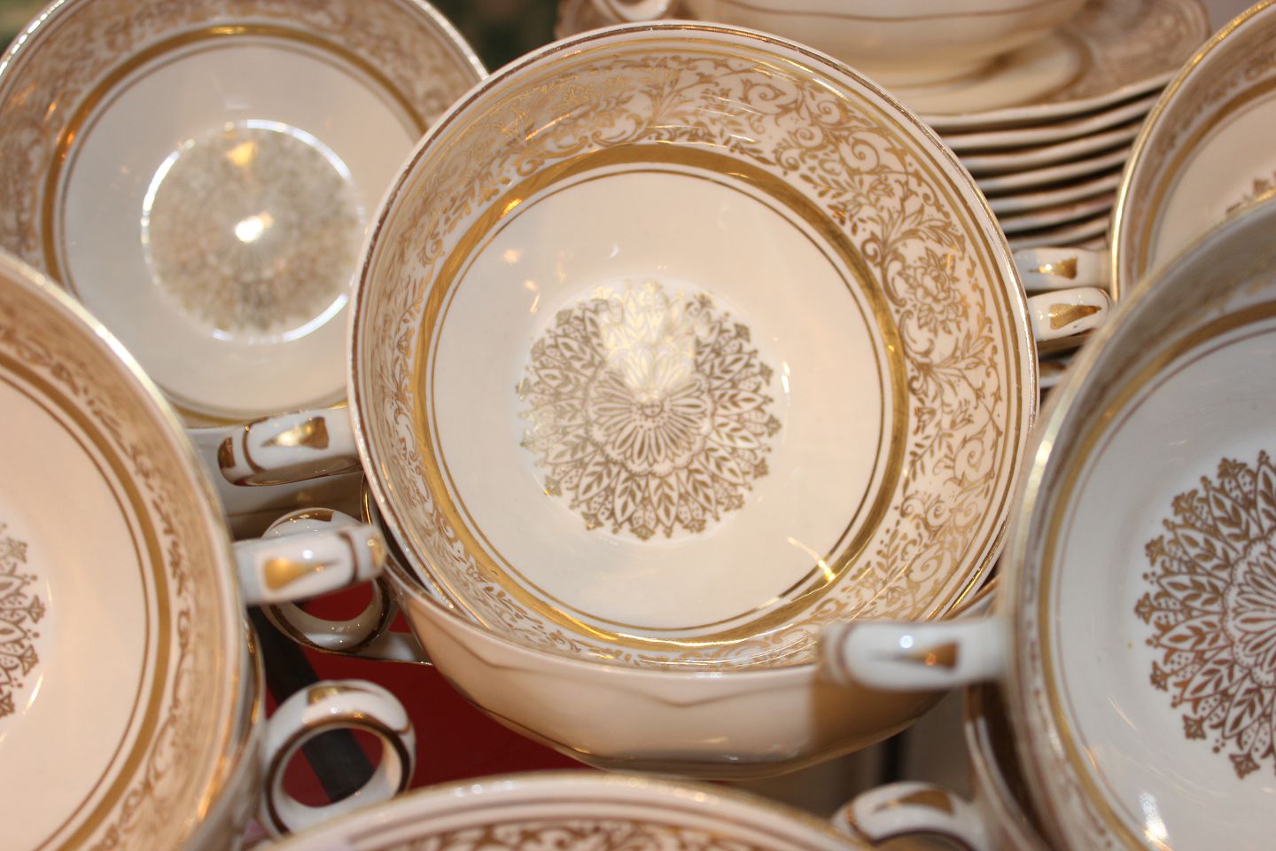 SolgtEngelsk spisestel bestående af boullionkopper og middagstallerkner.