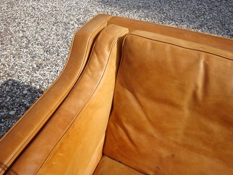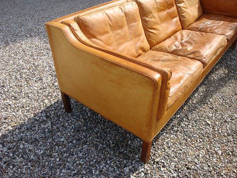 SoldBM 2213-3 seater sofa designed by Borge Mogensen in natural leather appears with very nice patina in good condition
