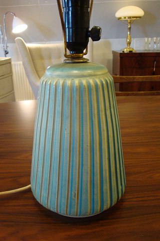 SolgtKeramik Bordlampe i mint grøn med rillet overflade. Lampen er i perfekt stand og højden er 45 cm.