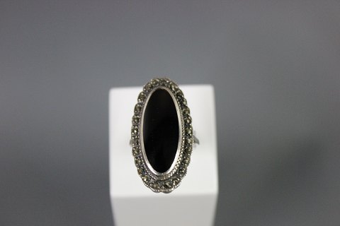 SolgtSølv ring 925s med stor oval onyks, omkredset af similisten. Str 58.