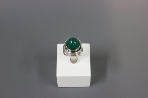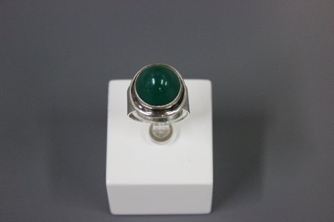 Silver Ring in sterling with a green cabochon cut agate designed by Bjørklund between 1961-1971 sign. Brd.B. Size 53.