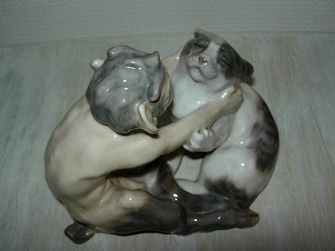 SoldRare Royal Copenhagen figurine.Faun with Cat number 1036,factory first.This mark on this figurine was used by Royal Copenhagen between 1898 and 1923