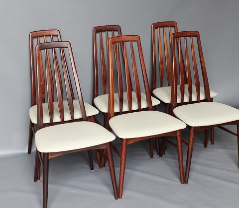 Sold6 Niels Koefoed chairs model Eva. Design from 1964, and the chairs are in rosewood and the seats in light wool. The chairs are manufactured by Koefoed Hornslet, odder