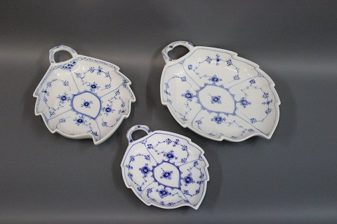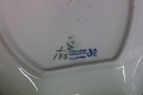 SoldRoyal Copenhagen leaf shaped blue fluted cake dish no. 1/145.