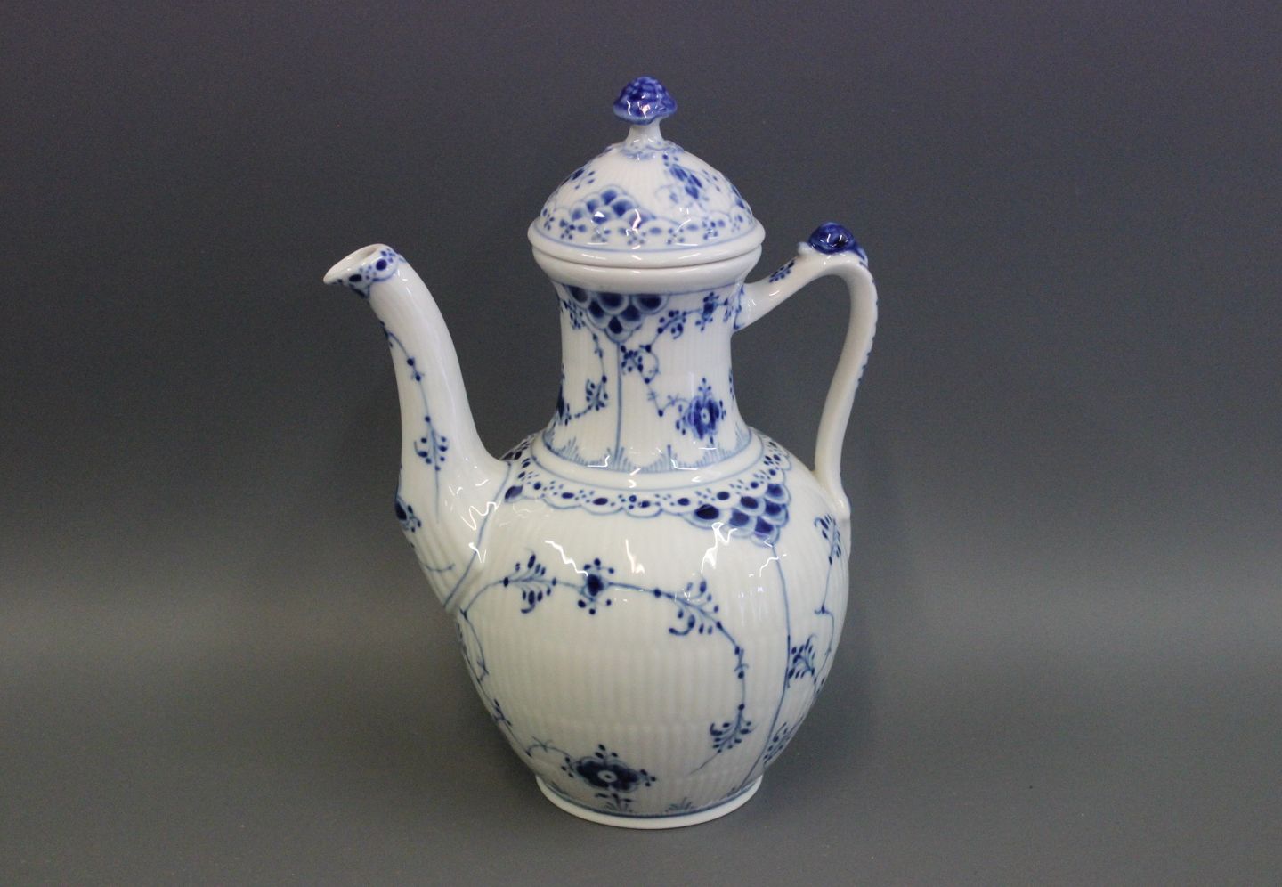 SolgtRoyal Copenhagen musselmalet halv blonde kaffekande/vase nr. 518. Kaffekanden blev lavet i 1966 og er designet af Arnold Krog i 1888.
