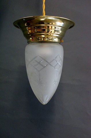 2 pendants in brass and in Jugendstil from 1930. The glass is from Funens glassworks and have been repaired.