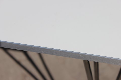 SoldPiet Hein coffee table in White laminate with steel edge. The table was designed by Arne Jacobsen and Piet Hein, Manufactured by Fritz Hansen.