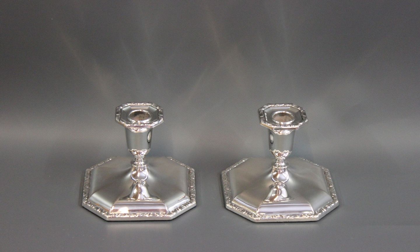 A pair of angular candlesticks in 830s. Model no.: 803 A and master stamped.