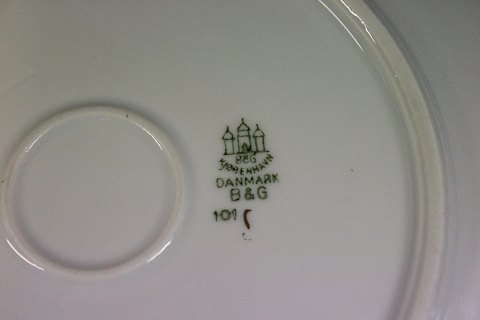 B&G saxon flower, dish with handles. The dish was made between 1948 and 1952.