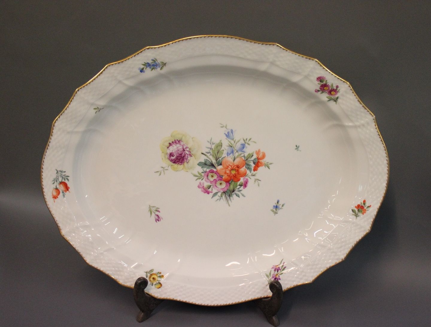 SolgtKongelig saksisk blomst stort aflangt fad, nr. 1559. Fadet er er lavet i 1943.