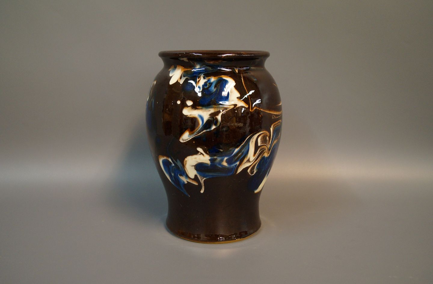 SolgtKeramik vase med brun, blå og hvid glasur fra 1960erne af Danico.