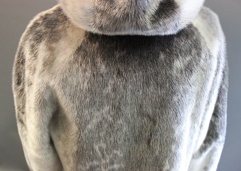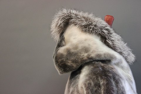SolgtSælpels frakke fra Stampe Denmark og mærket "The Royal Greenland Trade Denmark". Størrelse M/L.