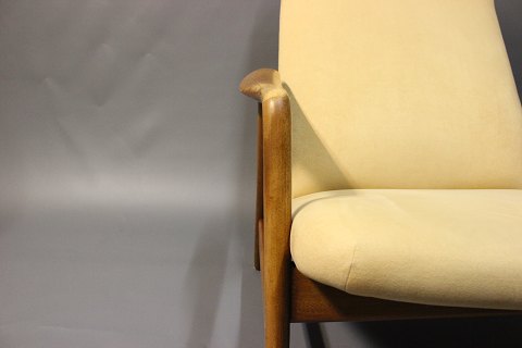 SoldHighback reclining lounge chair designed by Alf Svensson and manufactured by Fritz Hansen in 1957. The chair is in elm and upholstered with alcantara (suede).