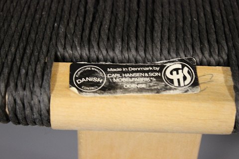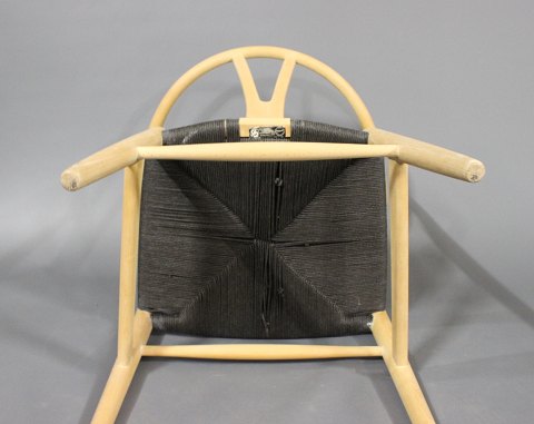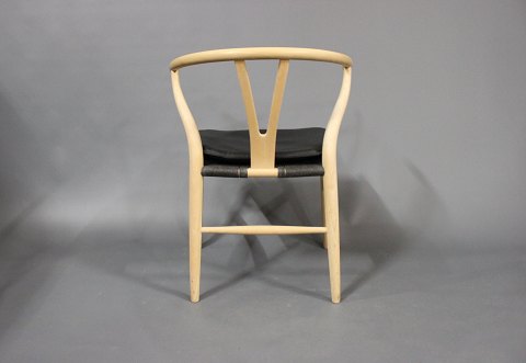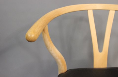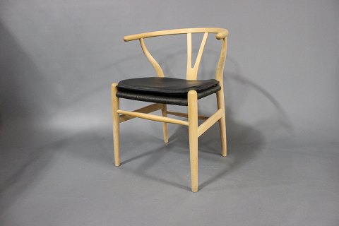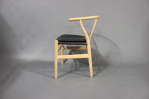 SoldSix Wishbone or Y chairs, model CH24, designed by Hans J. Wegner in 1950 and manufactured by Carl Hansen and son furniture factory around the 1980s. The chairs are stamped with the mark Danish furniture control. The Y chairs are made of beechwood, with Black papercord and Black leather cushions.