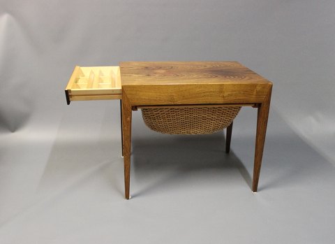 SoldSmall sewing table in rosewood and from the 1960s. The table was designed by Severing Hansen and manufactured by Haslev furniture factory.