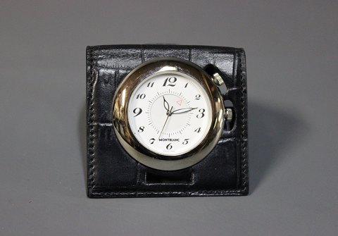 SolgtMont Blanc rejseur af stål med alarmfunktion, quartz værk og schweizisk. Uret har nr.: 7056, AL1692416 og er i et foldeligt læderetui med Mont Blancs logo.