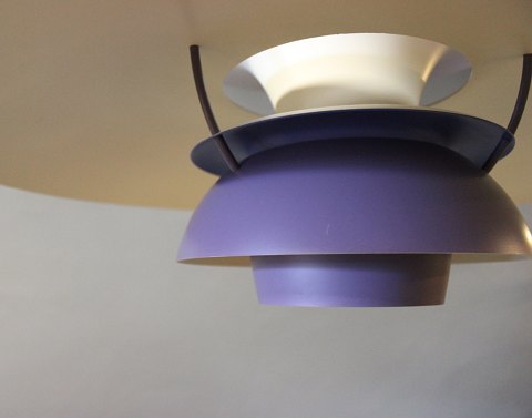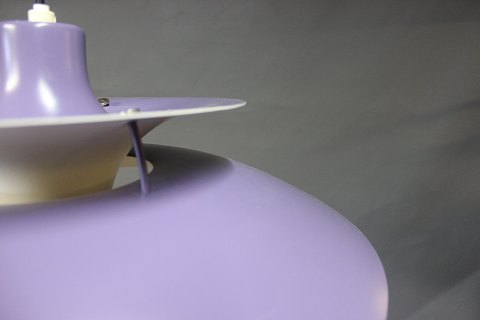 PH5 pendant designed by Poul Henningsen in 1958 and manufactured by Louis Poulsen. The pendant has purple lacquered metal Shades.