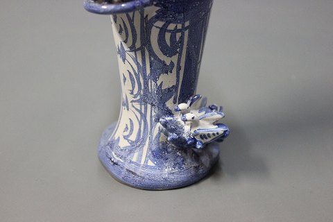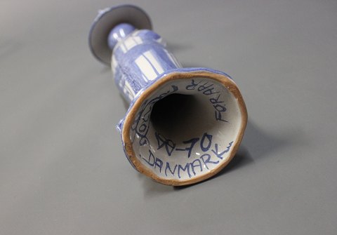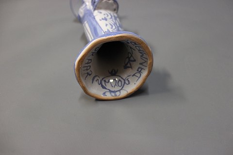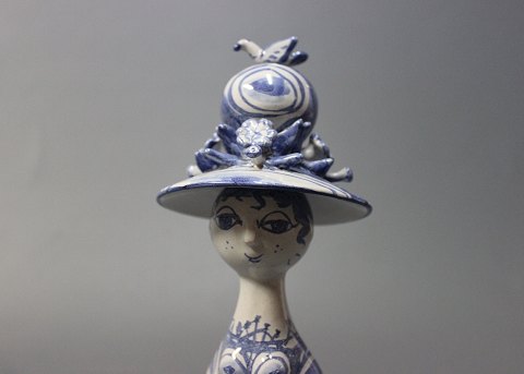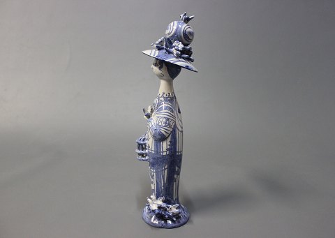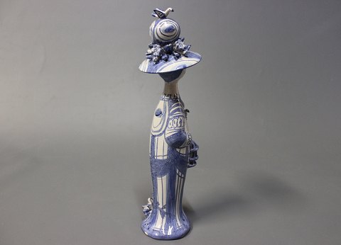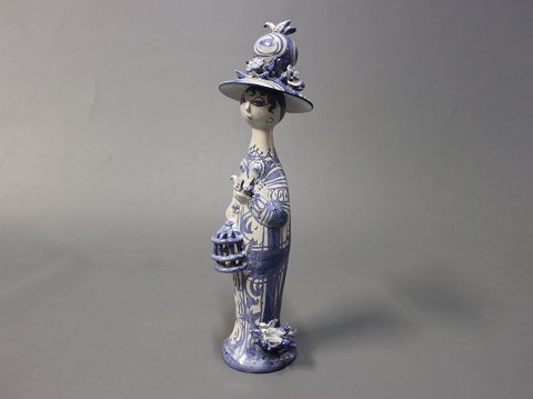 SolgtKeramik figur "Forår", M20, fra serien "De fire årstider" designet af Bjørn Wiinblad. Denne figur blev lavet i 1970 og er dekoreret i blå og hvide farver.