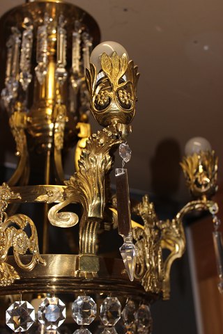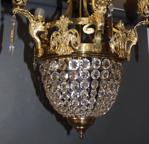 Crystal Chandelier, Five-armed with patinated brass .from around 1910
