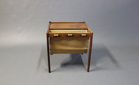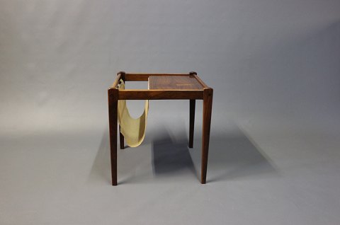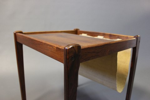 Small newspaper holder/lamp table i rosewood. The item is of Danish design from the 1960s.