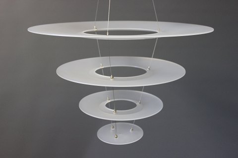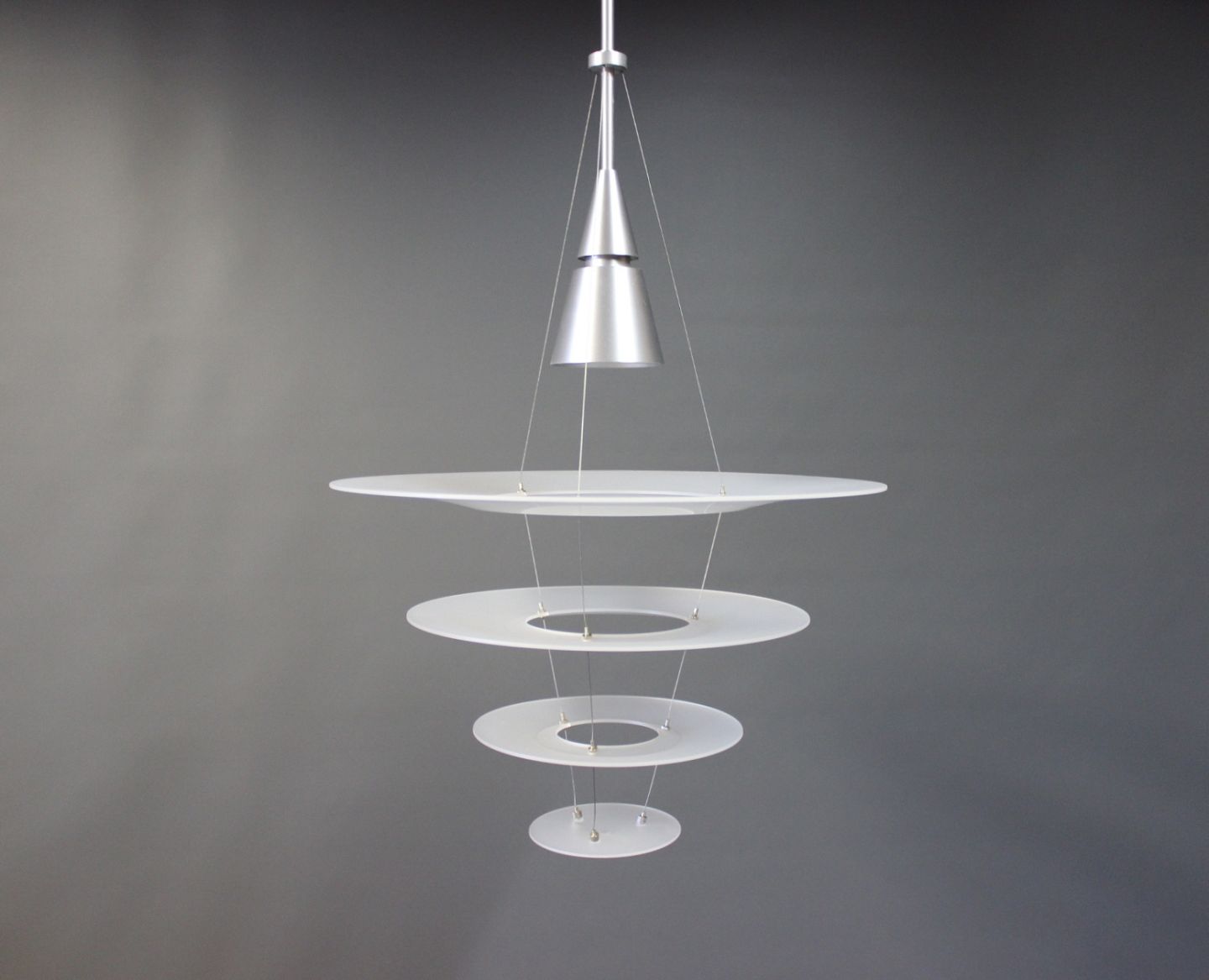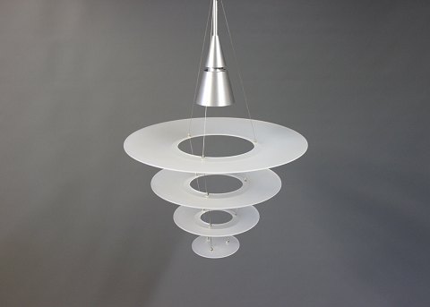 SolgtEnigma 425 pendel design af Shoichi Uchiyama og fremstillet af Louis Poulsen. Pendlen er i børstet aluminium og mat akryl.