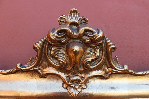 SoldBeautifully decorated mirror with frame of original gold leaf from Denmark in 1820.