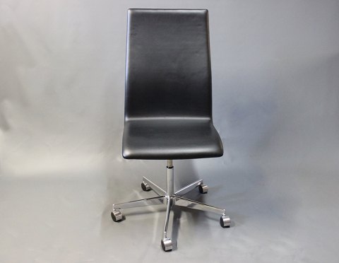 Oxford office chair in Black leather by Arne Jacobsen and Fritz Hansen.