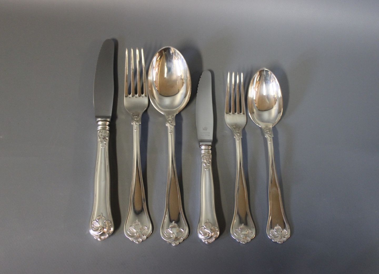 Dinner set in Saxon, hallmarked silver. See prices and single Photos of the cutlery in this category.