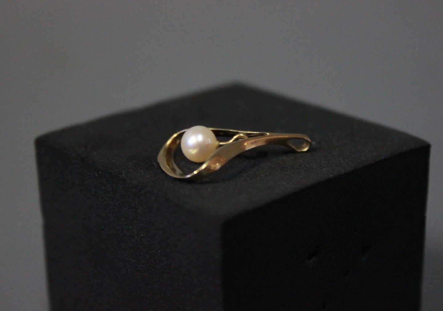Vedhæng i 8 kt. guld med fin lille kulturperle, design af BH.