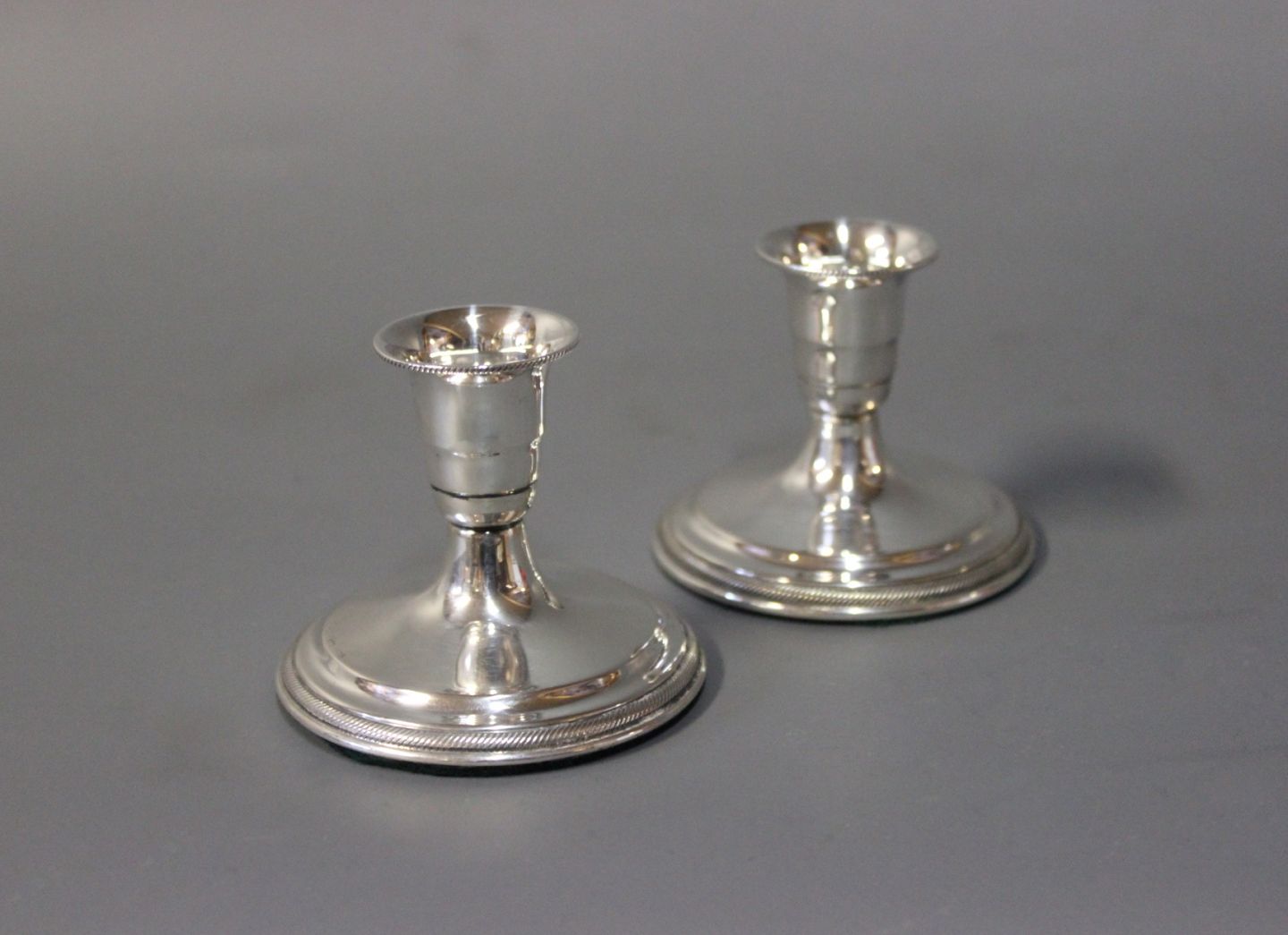 A pair of low candlesticks in 830 silver with felt at the bottom.