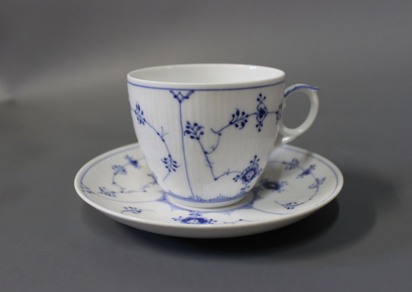Royal Copenhagen blue fluted cocoacup with saucer.