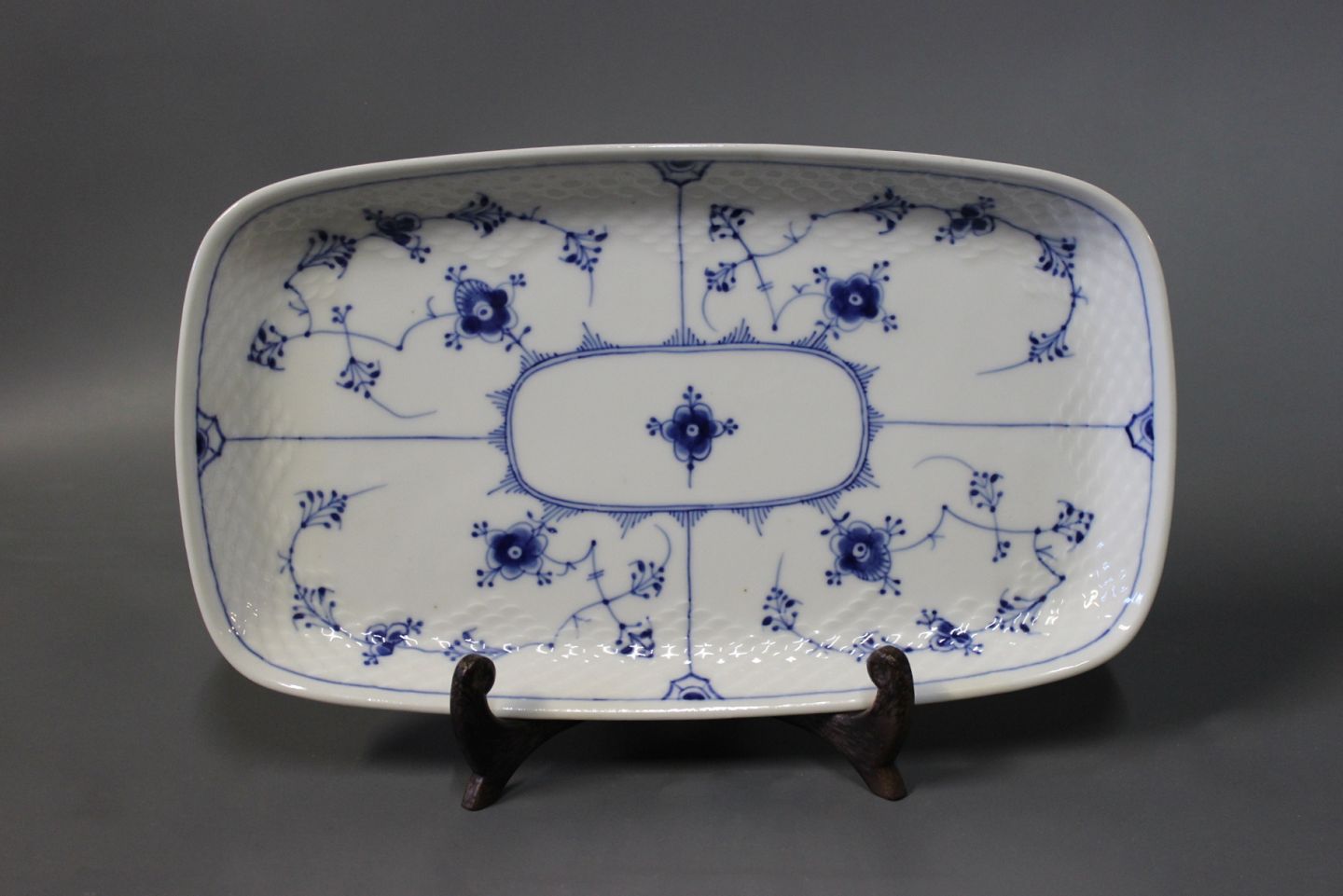 B&G musselmalet/blåmalet rektangulært fad, stemplet #11.