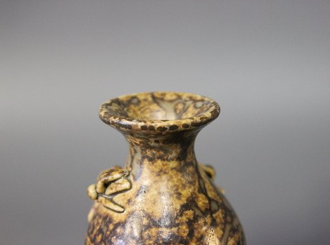 SoldSmall ceramic vase in Brown colors by Arne Bang, no.124.