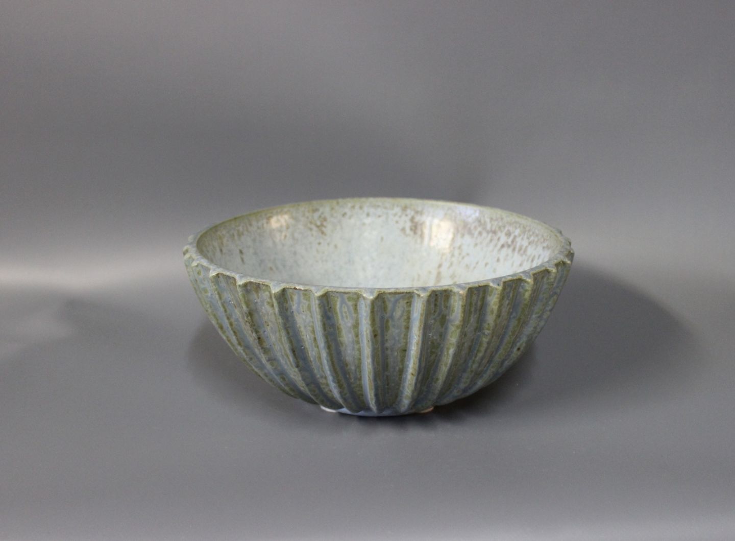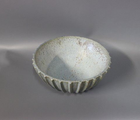 Stor keramik skål i grå farver af Arne Bang, nr. 139.