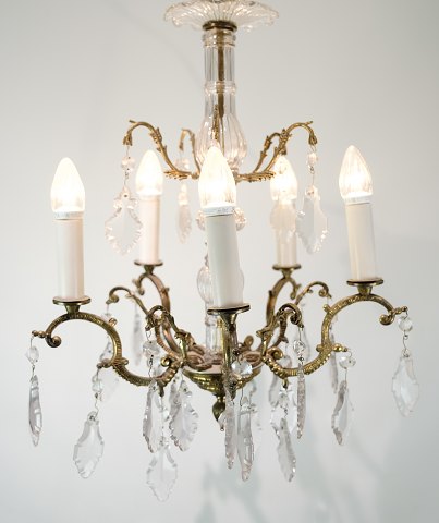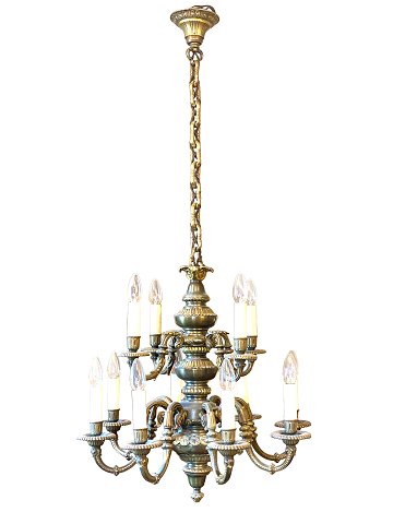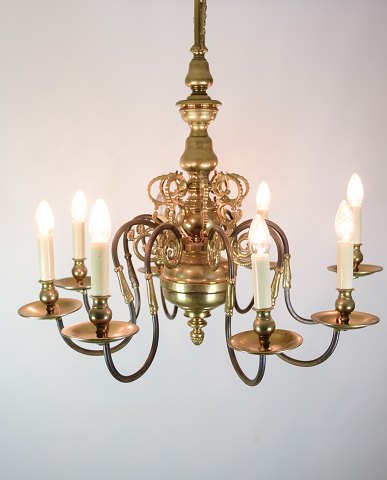 Large ceiling lamp in brass from the year 1930. The lamp was made in Silkeborg, Denmark.