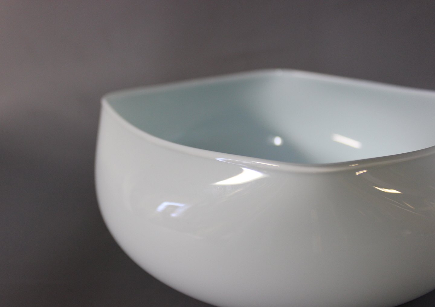 Lyseblå Holmegaard glasskål, i perfekt stand.